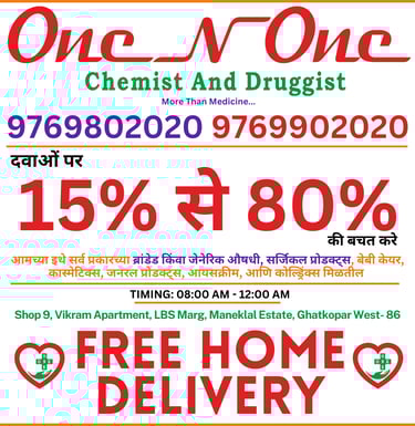 Welcome to One N One Chemist And Druggist, your trusted neighborhood pharmacy in Ghatkopar West, Mumbai.